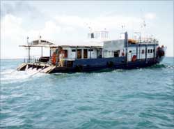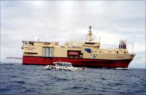 Os navios estavam retornando da área entre Boipeba e Morro, onde tinham realizados os testes com o plâncton. Encontramos Sr. Julio Ruano da Everest, com o grupo da Universidade Federal do Espírito Santo, que desembarcavam do navio Ramform Viking para seguir com a lancha Cristina III para Barra Grande. |