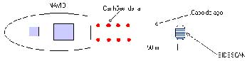 Além das quatro gaiolas perto do recife, tinha mais duas, numa distância de 500 metros e outra cerca de 4 km distante do local dos experimentos. Os peixes nesta ultima gaiola, serviram de grupo de referência, que receberam o impacto da captura e do transporte igual aos outros, mas não iam sentir o impacto das detonações dos air-guns.
