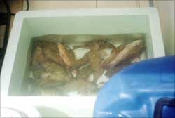 O trabalho demorava até o final da tarde e por falta de aeradores, todos os peixes sofreram muito com o transporte e alguns morreram. |