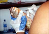 Em Garapuá, a equipe do Gia verificou a quantidade de larvas (plâncton) que conseguiram deslocar-se da parte inferior de um cilindro escuro para a parte superior, onde havia luz de uma lâmpada. Usavam vários cilindros, onde testavam as diferentes amostras, coletadas perto da praia (controle) e na área das detonações. Dessa forma, os biólogos poderão dizer, quantas larvas subiram para a parte superior, o que significa que estavam vivos e conseguiram nadar, e quantas larvas ficaram na parte inferior, o que quer dizer que as larvas estavam mortas ou adejadas sem conseguir se mover. |